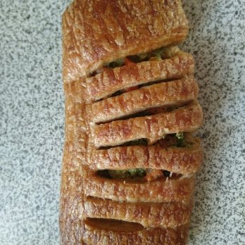 Weizenvollkornmehl*, belebtes Wasser, Margarine*, Hefe*, Vollrohrzucker*, Meersalz, Acerola*. (Füllung: Gemüse*, Sojamilch*, Maisstärke*, Gemüsebrühe*, Meersalz, Knoblauch*, Pfeffer*)
