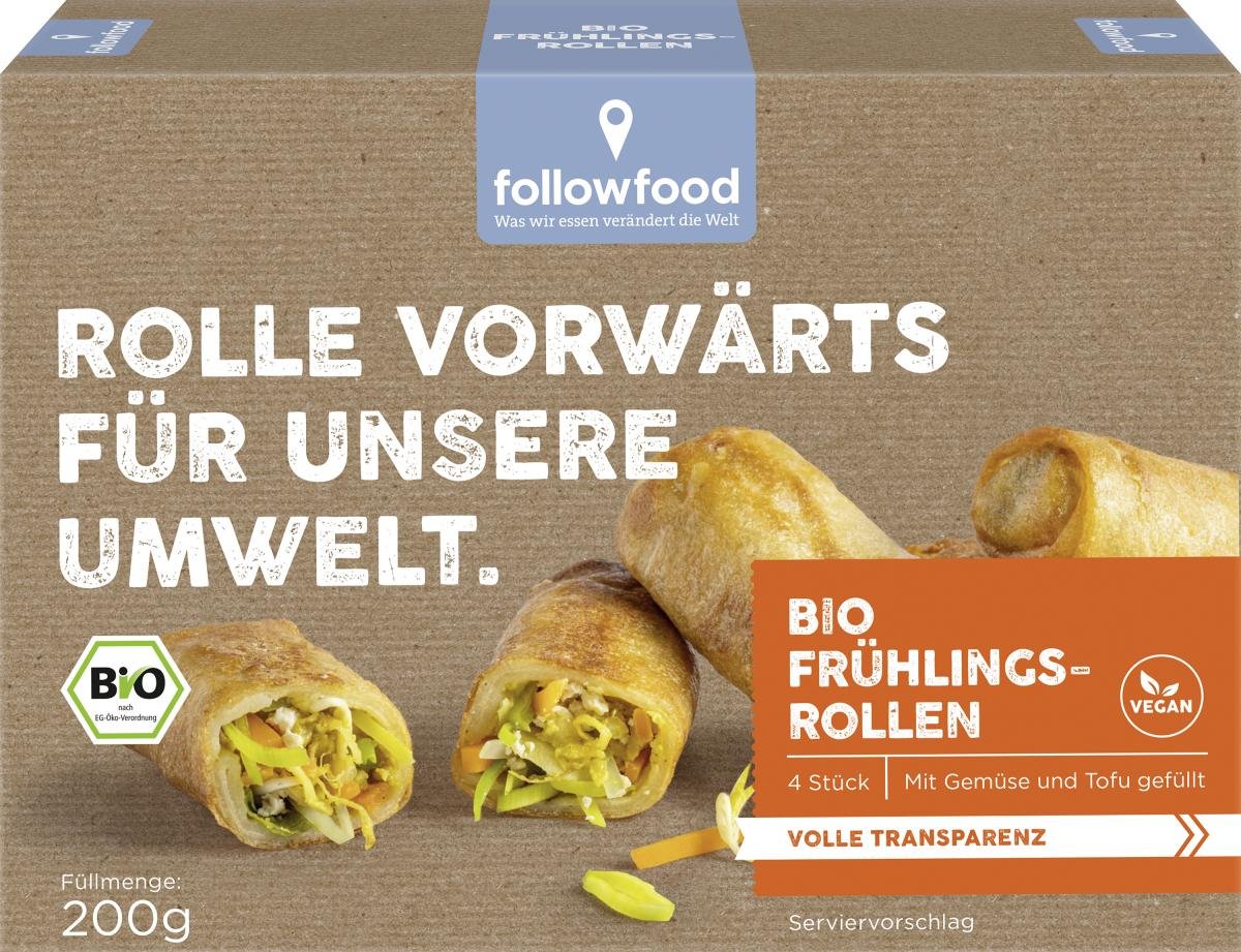 Für alle, die auch zwischendurch gern etwas für die Umwelt tun: für die veganen followfood Bio Frühlingsrollen werden ausschließlich Zutaten aus ökologischer Landwirtschaft verwendet. In die kleinen veganen Köstlichkeiten wickeln wir Bio-Tofu aus Deutschland, feine Bio-Gewürze und knackiges Bio-Gemüse. Perfekt, um aufs Sofa zu rollen und von dort aus etwas Gutes zu tun.