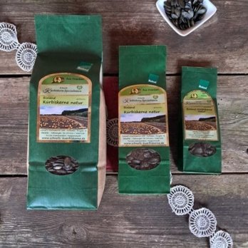 Fränkische Bioland-Kürbiskerne natur, angebaut auf Bioland-Äckern, sonnengereift und schonend getrocknet eignen sich hervorragend für Müsli, oder über den Salat gestreut.