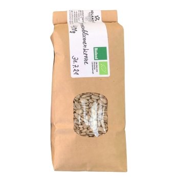 Sonnenblumenkerne vom Biolandhof Nagengast. Sehr lecker, wenn die Kerne ohne Fett leicht angeröstet werden, zum Salat oder gedünstetem Gemüse oder im Auflauf.