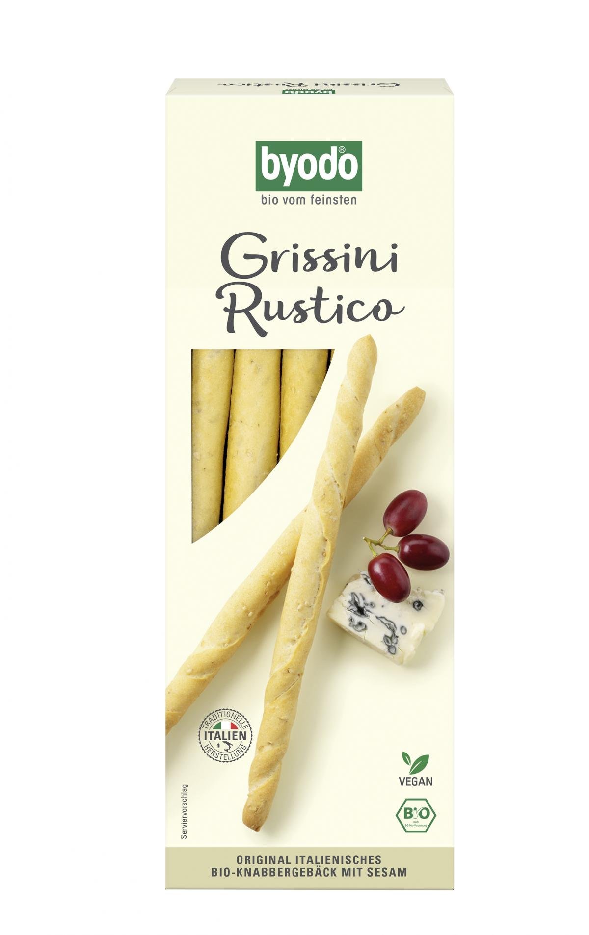Die Grissini Rustico von Byodo erinnern optisch an Mini-Baguettestangen. Die Knabberstangen sind wunderbar knusprig und schmecken nussig nach Sesam.