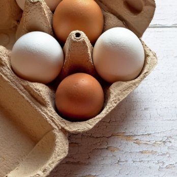 Die Eier stammen vom Ökohof Winkelmann aus Schnaittach. Die Haltung erfüllt die strengen Verbands-Richtlinien: viel Platz, geschützte Legenester, immer Zugang ins Freiland, 100% ökologisches Hühnerfutter. Und auch die jungen Hähne dürfen wachsen, scharren und krähen. Sie leben auf einem Partnerhof in großzügigen Ställen mit Grünauslauf und wachsen ebenso wie die Hennen nach Demeter-Richtlinien mit bestem Futter heran. Der Betrieb ist Qualitätsmacher, spätestens beim Kuchenbacken werden Sie es merken.