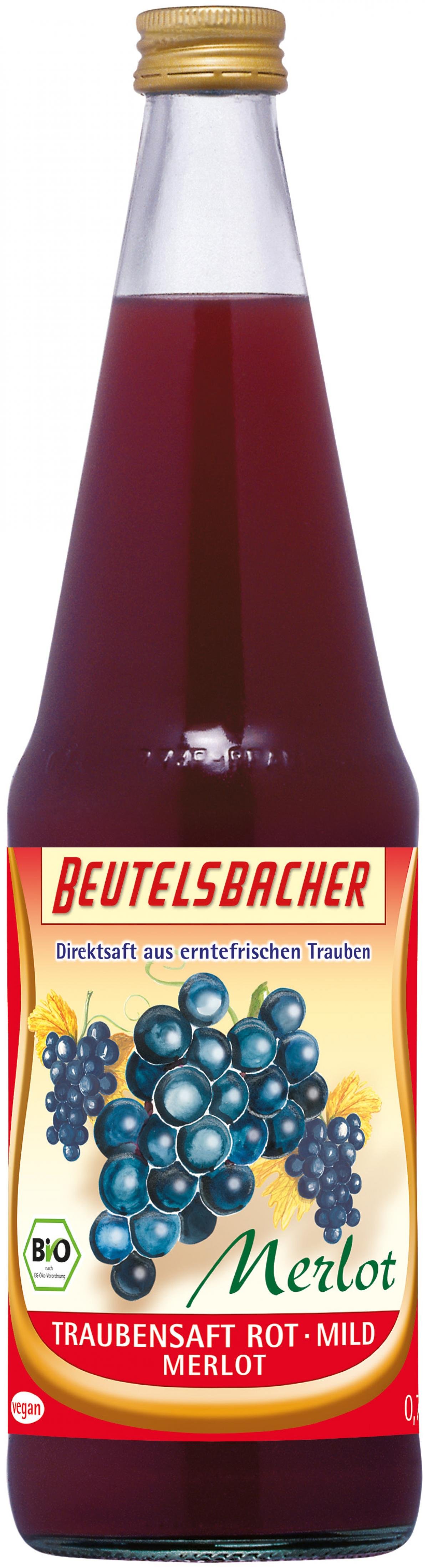 Wir wählen aus den besten Lagen die biologisch angebauten roten Trauben der Sorte Merlot aus, um eine optimale Balance zwischen Säure und Zucker zu bekommen. Merlot ist eine der berühmtesten und ältesten roten Trauben, deren Spuren bis zum 14. Jahrhundert in Frankreich zurückgehen. Sie wird auch Merlot Noir genannt, was sinngemäß übersetzt schwarze Amsel bedeutet. Aus den erfrischenden Trauben wird schonend der naturtrübe Bio-Direktsaft gekeltert. Der vollmundige Geschmack zeigt einen fruchtigen aromatischen Charakter. Die Farbe der schwarzblauen Beeren ergibt einen rubinroten Saft. Der einzigartige Geschmack bestätigt die Berühmtheit der Traube Merlot. Bitte überzeugen Sie sich!