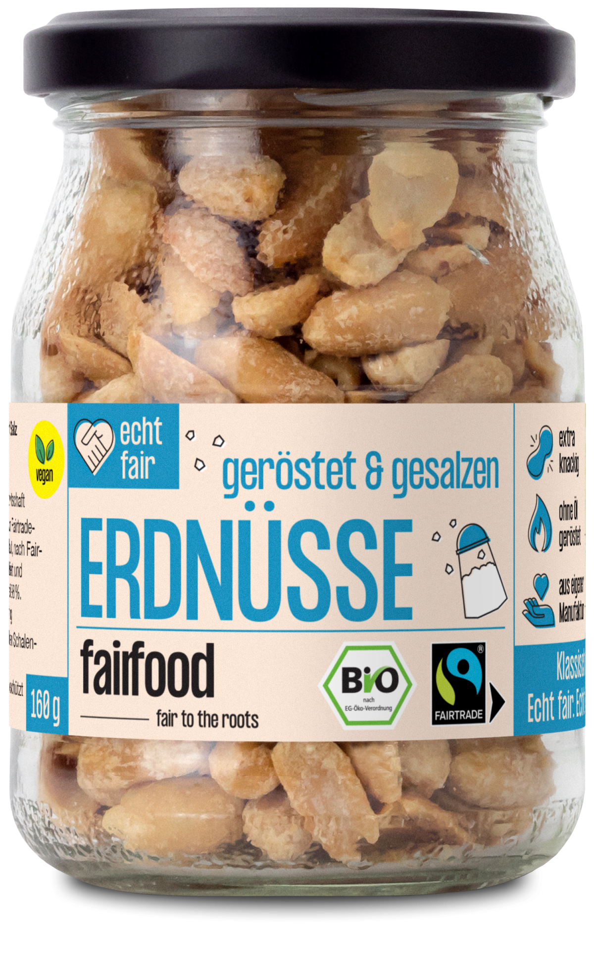 Faire Bio-Nüsse direkt importiert aus dem Anbauland. In Freiburg geröstet und nachhaltig verpackt im wiederverwendbaren Pfandglas.