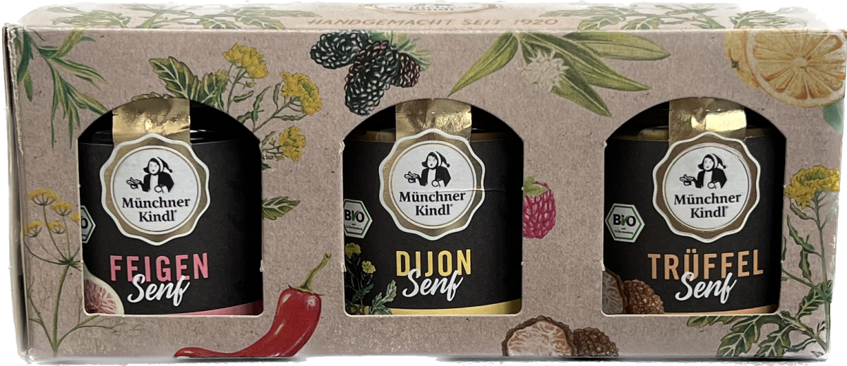 schönes Geschenkset mit feinen, festlichen Bio Senf Spezialitäten von Münchner Kindl